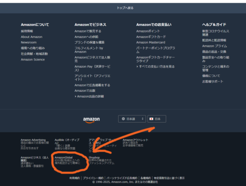 | 2 | ページ下部にある「Amazon Global」をクリックする |